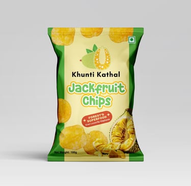 Khunti Kathal Jackfruit Chips are a crispy, delicious snack made from 100% natural jackfruit. These chips are lightly seasoned and cooked to perfection, make it perfect for guilt-free snacking. They are cholesterol-free, rich in fiber and free from artificial additives.